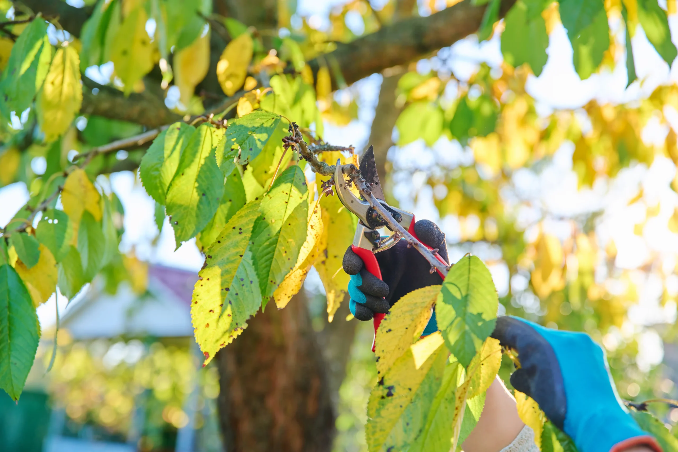 Careful trimming and pruning to promote healthy plant and tree growth.